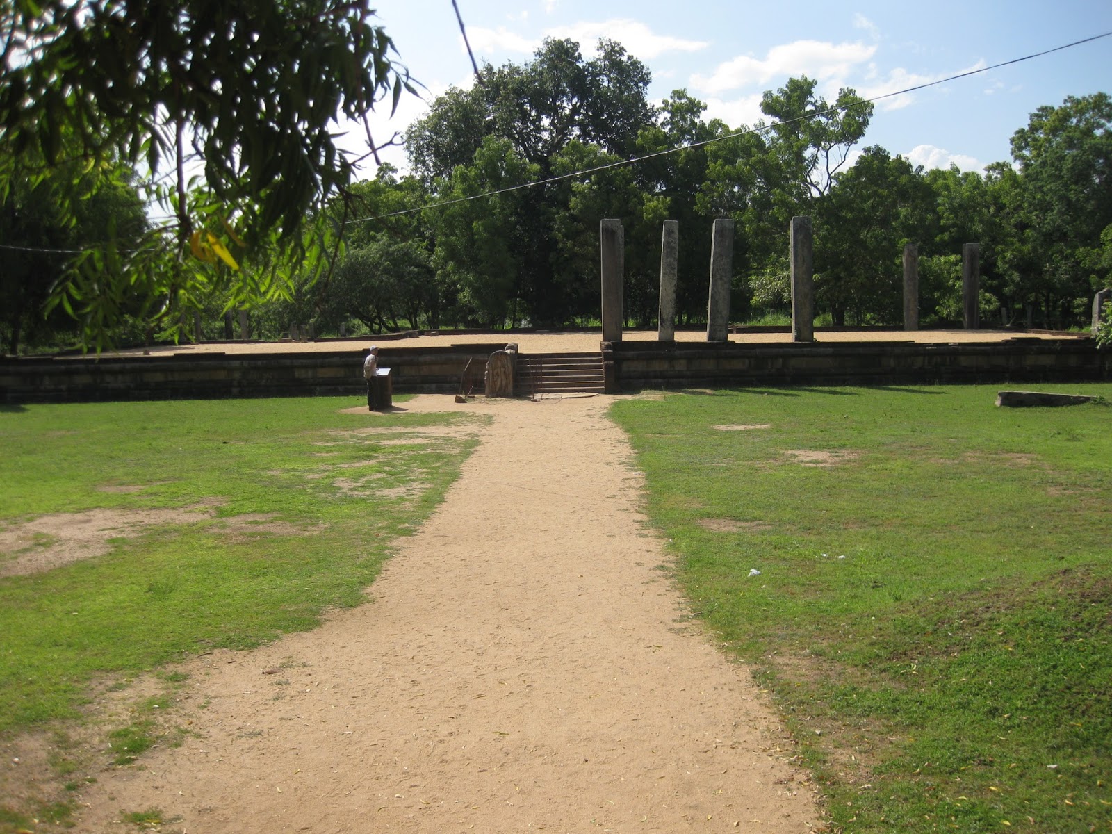 まず向かったのは,遺跡群の南端にあるイスルムニヤ精舎.ここはアヌラーダプラの遺跡の中じゃイレギュラーな寺院らしいが,かなり雰囲気がGOOD.寺院と池と緑のバランスがとてもいい.ちなみにスリランカの寺院は基本的に土足厳禁だが,裸足は痛いので靴下で砂利の上を歩き回る.靴下は捨てながら旅行するしかないな….